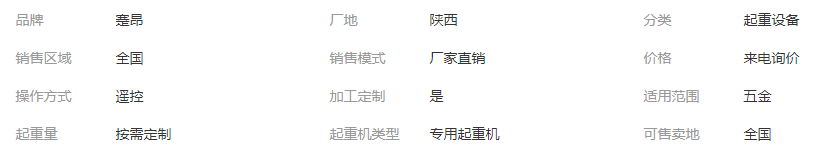 陜西蹇昂起重主要經(jīng)營電動葫蘆,卷揚機,單雙梁橋式起重機,門式起重機,通用橋式起重機,柔性梁輕型起重機,懸臂吊,防爆起重機、新型起重機以及各種特種起重設(shè)備的銷售、安裝、維修、保養(yǎng)、拆裝等業(yè)務(wù)。我公司銷售產(chǎn)品廣泛應(yīng)用于裝備制造、造紙、能源電力、汽車船舶、金屬加工、航空航天等領(lǐng)域。